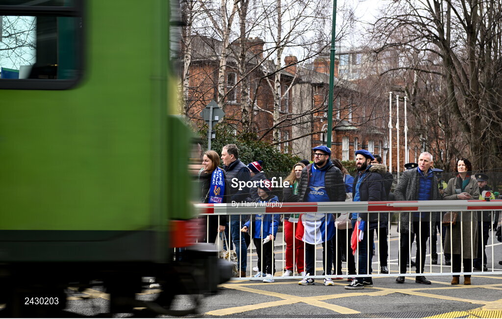 11 February 2023; French supporters wait for a train to pass by Lansdowne Road station before the Guinness Six Nations Rugby Championship match between Ireland and France at the Aviva Stadium in Dublin. Photo by Harry Murphy/Sportsfile