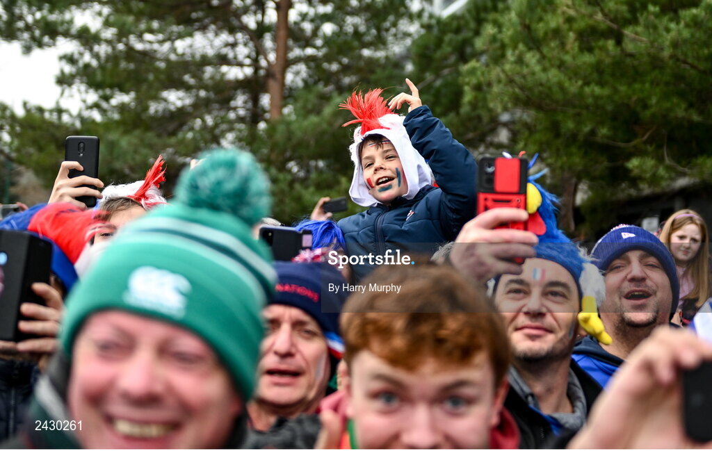 11 February 2023; A young France supporter before the Guinness Six Nations Rugby Championship match between Ireland and France at the Aviva Stadium in Dublin. Photo by Harry Murphy/Sportsfile