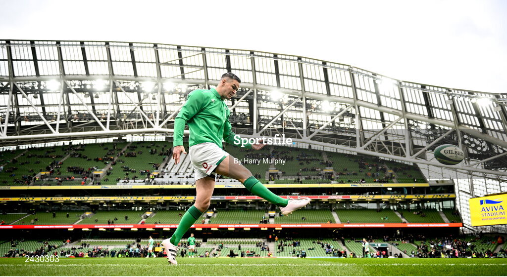 11 February 2023; Ireland captain Jonathan Sexton warms-up before the Guinness Six Nations Rugby Championship match between Ireland and France at the Aviva Stadium in Dublin. Photo by Harry Murphy/Sportsfile
