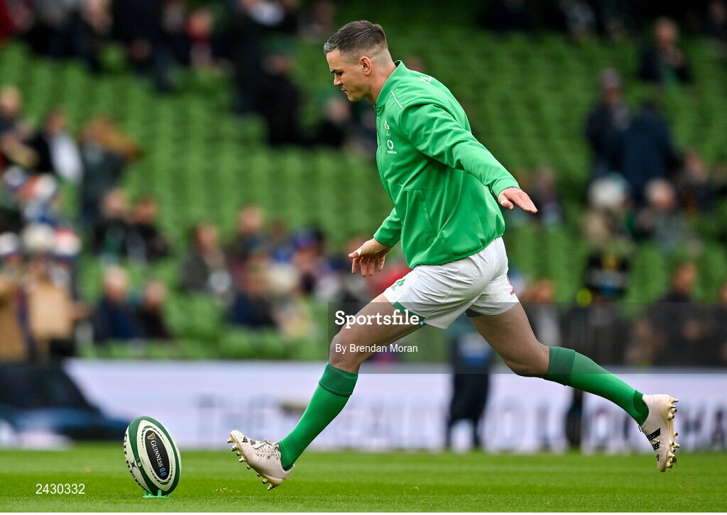 11 February 2023; Jonathan Sexton of Ireland warms-up before the Guinness Six Nations Rugby Championship match between Ireland and France at the Aviva Stadium in Dublin. Photo by Brendan Moran/Sportsfile