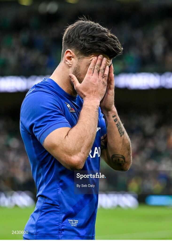 11 February 2023; Romain Ntamack of France after his side's defeat in the Guinness Six Nations Rugby Championship match between Ireland and France at the Aviva Stadium in Dublin. Photo by Seb Daly/Sportsfile