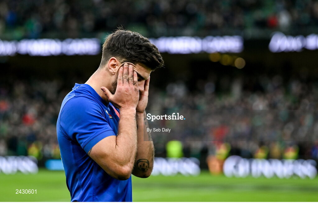 11 February 2023; Romain Ntamack of France after his side's defeat in the Guinness Six Nations Rugby Championship match between Ireland and France at the Aviva Stadium in Dublin. Photo by Seb Daly/Sportsfile
