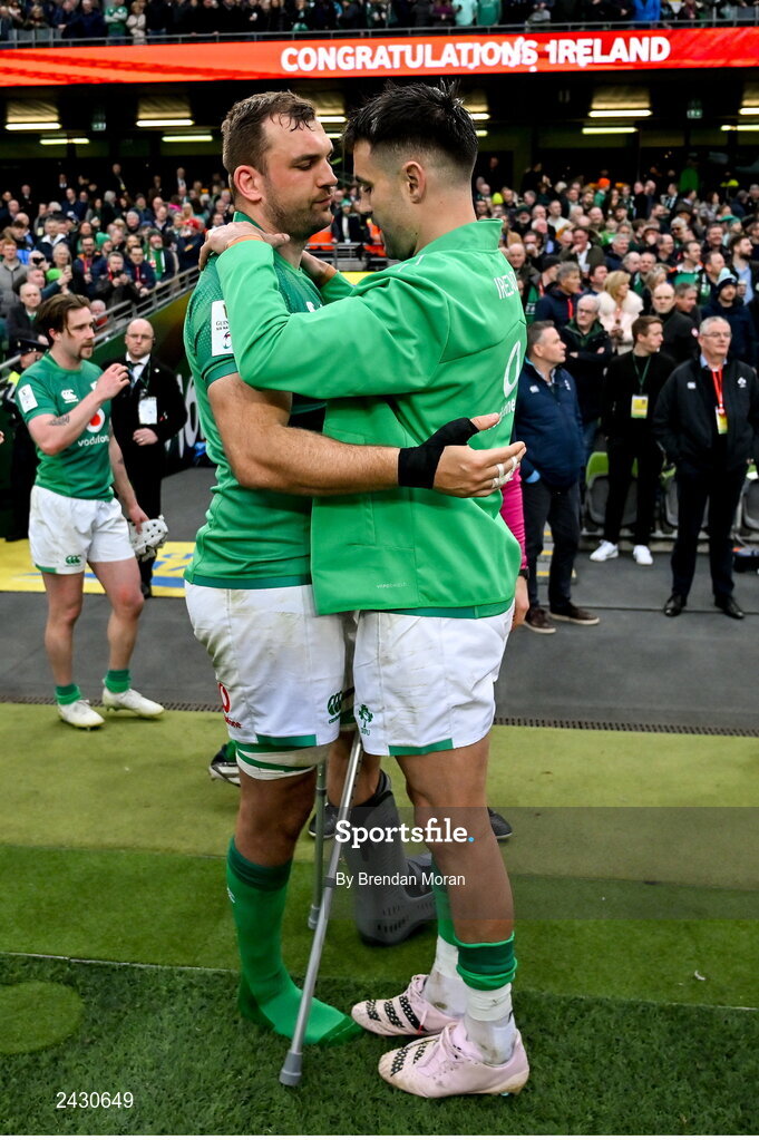 11 February 2023; Tadhg Beirne, left, and Conor Murray of Ireland after the Guinness Six Nations Rugby Championship match between Ireland and France at the Aviva Stadium in Dublin. Photo by Brendan Moran/Sportsfile