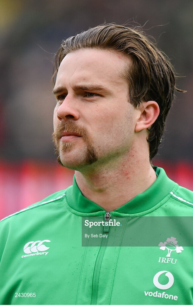 11 February 2023; Mack Hansen of Ireland before the Guinness Six Nations Rugby Championship match between Ireland and France at the Aviva Stadium in Dublin. Photo by Seb Daly/Sportsfile