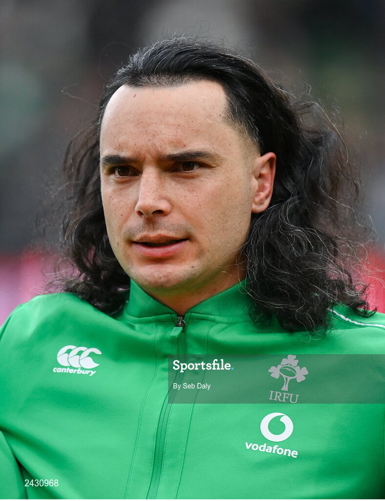 11 February 2023; James Lowe of Ireland before the Guinness Six Nations Rugby Championship match between Ireland and France at the Aviva Stadium in Dublin. Photo by Seb Daly/Sportsfile