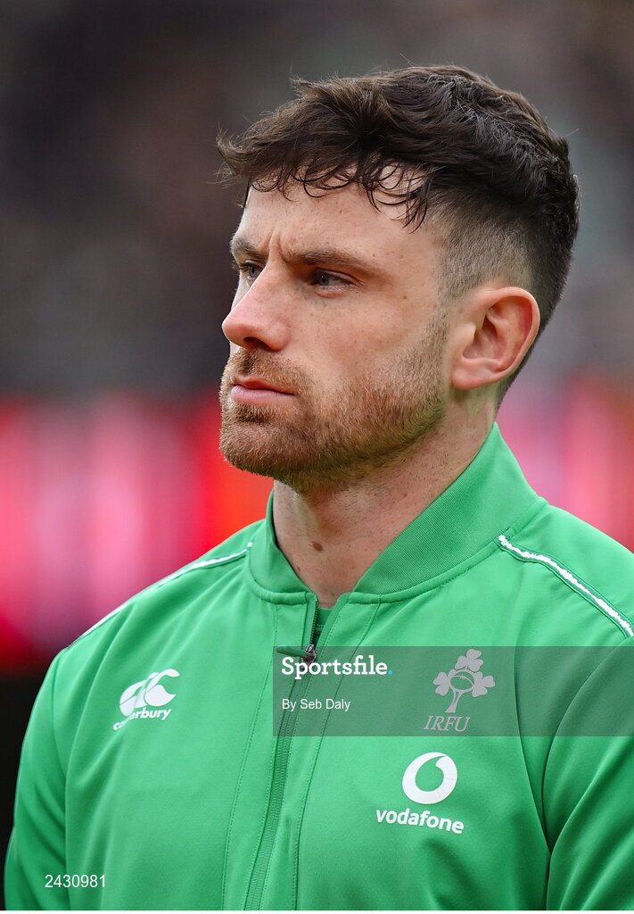 11 February 2023; Hugo Keenan of Ireland before the Guinness Six Nations Rugby Championship match between Ireland and France at the Aviva Stadium in Dublin. Photo by Seb Daly/Sportsfile