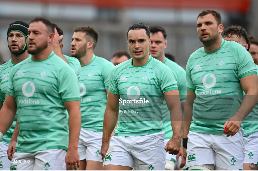 11 February 2023; James Lowe of Ireland, centre, before the Guinness Six Nations Rugby Championship match between Ireland and France at the Aviva Stadium in Dublin. Photo by Seb Daly/Sportsfile