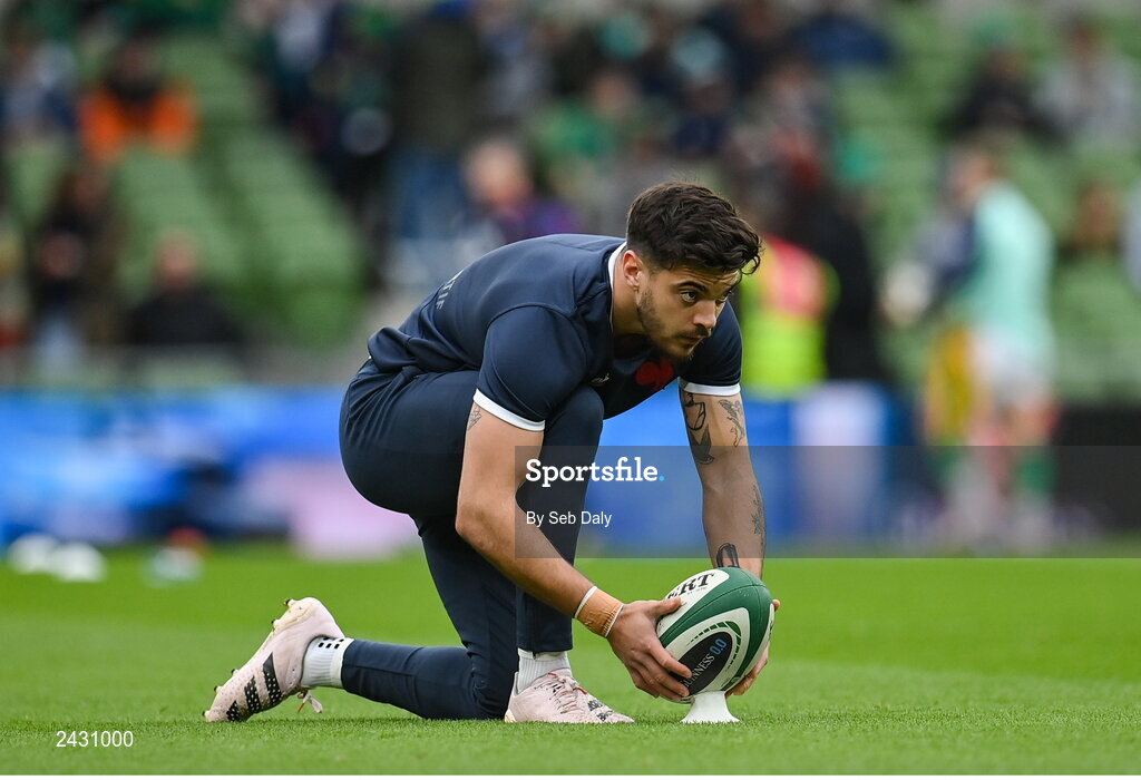 11 February 2023; Romain Ntamack of France before the Guinness Six Nations Rugby Championship match between Ireland and France at the Aviva Stadium in Dublin. Photo by Seb Daly/Sportsfile