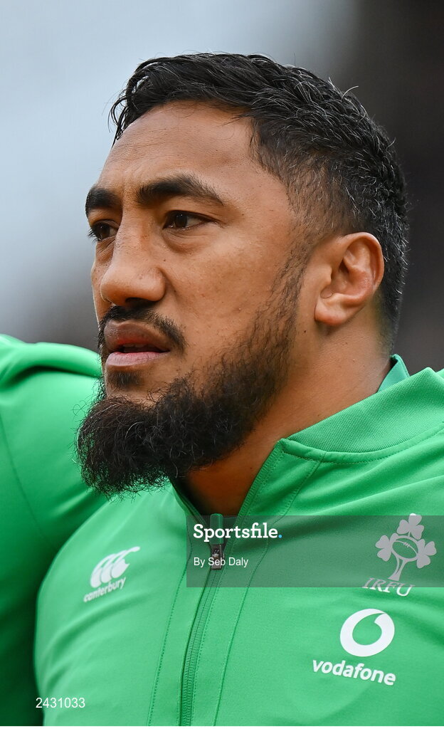 11 February 2023; Bundee Aki of Ireland before the Guinness Six Nations Rugby Championship match between Ireland and France at the Aviva Stadium in Dublin. Photo by Seb Daly/Sportsfile