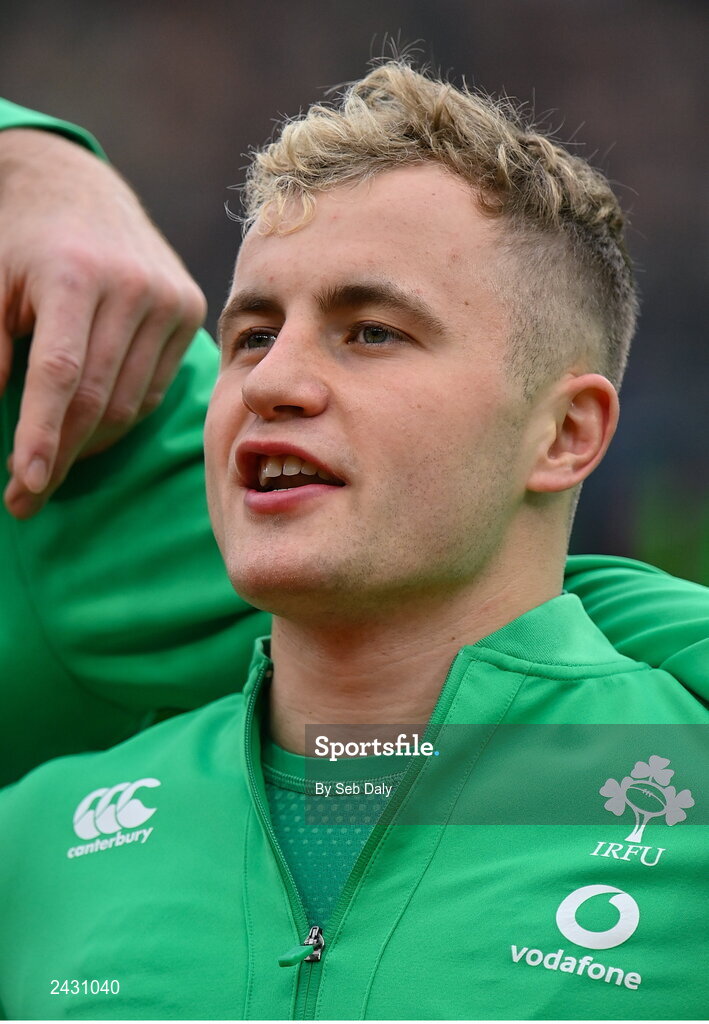 11 February 2023; Craig Casey of Ireland before the Guinness Six Nations Rugby Championship match between Ireland and France at the Aviva Stadium in Dublin. Photo by Seb Daly/Sportsfile