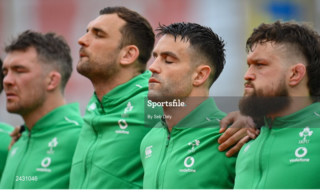 11 February 2023; Ireland players, from right, Andrew Porter, Conor Murray, Tadhg Beirne and Peter O’Mahony before the Guinness Six Nations Rugby Championship match between Ireland and France at the Aviva Stadium in Dublin. Photo by Seb Daly/Sportsfile