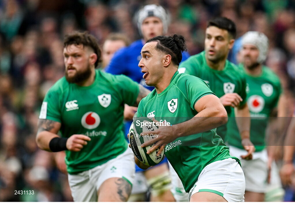 11 February 2023; James Lowe of Ireland during the Guinness Six Nations Rugby Championship match between Ireland and France at the Aviva Stadium in Dublin. Photo by Seb Daly/Sportsfile