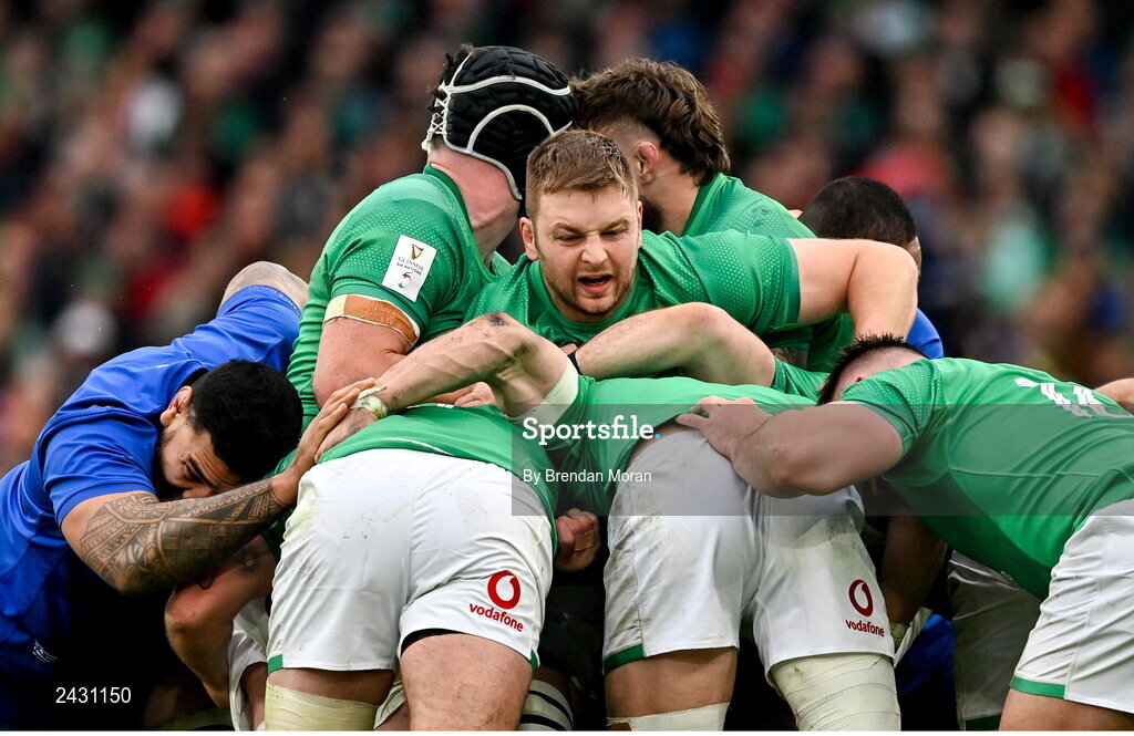 11 February 2023; Iain Henderson of Ireland controls a maul during the Guinness Six Nations Rugby Championship match between Ireland and France at the Aviva Stadium in Dublin. Photo by Brendan Moran/Sportsfile