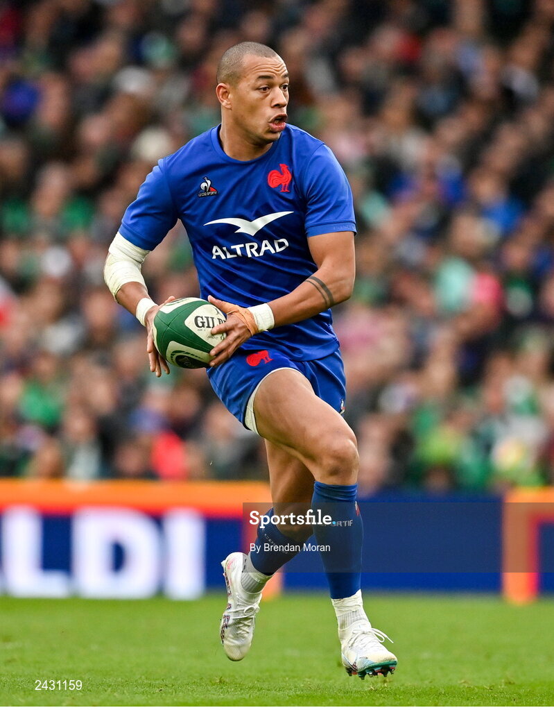 11 February 2023; Gael Fickou of France during the Guinness Six Nations Rugby Championship match between Ireland and France at the Aviva Stadium in Dublin. Photo by Brendan Moran/Sportsfile