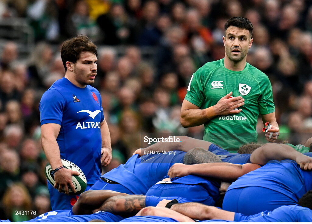 11 February 2023; Antoine Dupont of France and Conor Murray of Ireland during the Guinness Six Nations Rugby Championship match between Ireland and France at the Aviva Stadium in Dublin. Photo by Harry Murphy/Sportsfile