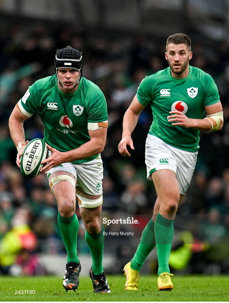 11 February 2023; James Ryan, left, and Stuart McCloskey of Ireland during the Guinness Six Nations Rugby Championship match between Ireland and France at the Aviva Stadium in Dublin. Photo by Harry Murphy/Sportsfile