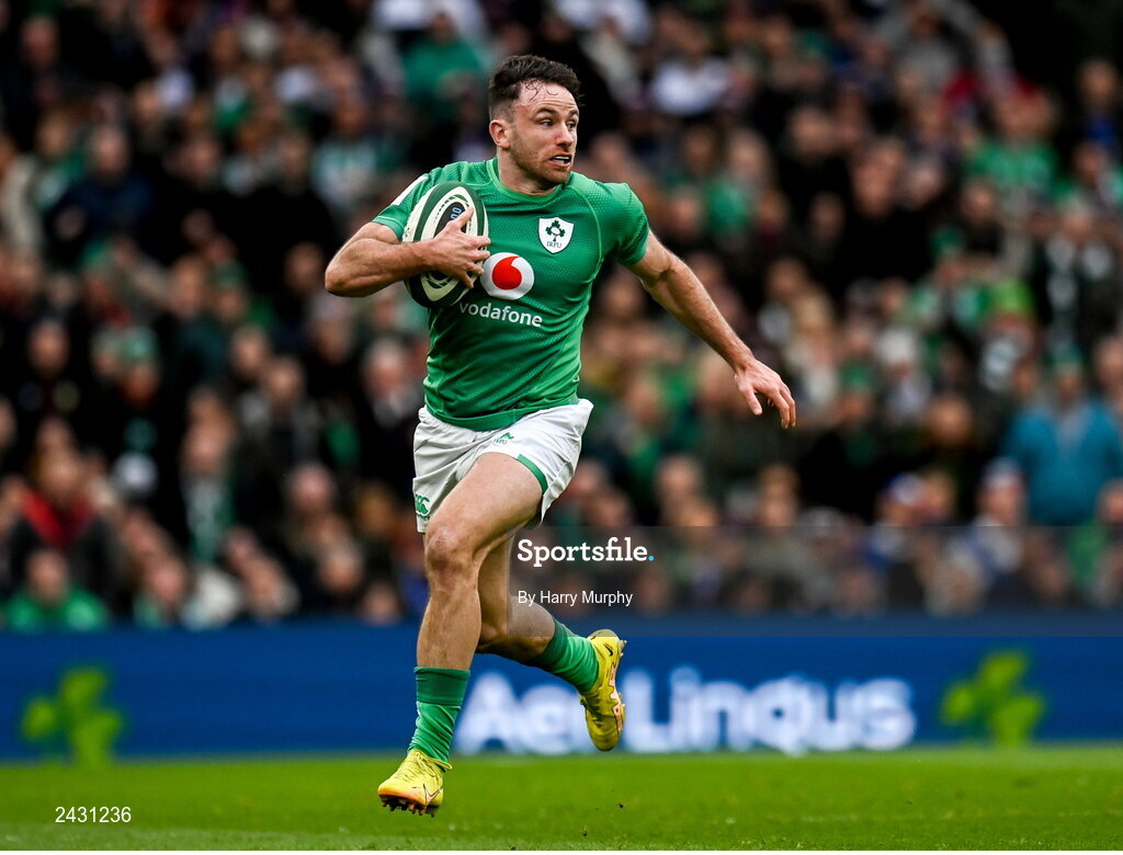 11 February 2023; Hugo Keenan of Ireland during the Guinness Six Nations Rugby Championship match between Ireland and France at the Aviva Stadium in Dublin. Photo by Harry Murphy/Sportsfile