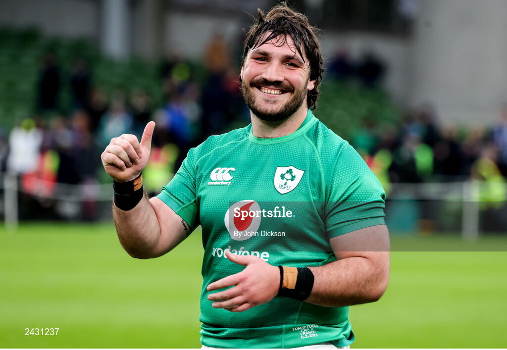 11 February 2023; Tom O’Toole of Ireland after the Guinness Six Nations Rugby Championship match between Ireland and France at the Aviva Stadium in Dublin. Photo by John Dickson/Sportsfile
