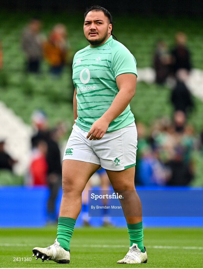 11 February 2023; Roman Salanoa of Ireland before the Guinness Six Nations Rugby Championship match between Ireland and France at the Aviva Stadium in Dublin. Photo by Brendan Moran/Sportsfile