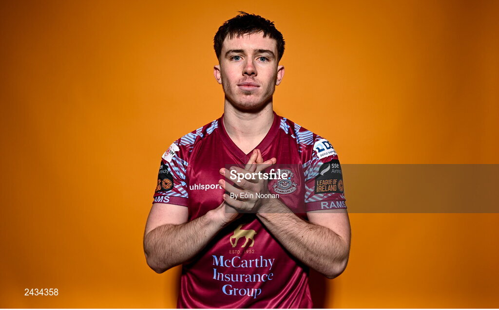 15 February 2023; James O'Leary poses for a portrait during a Cobh Ramblers squad portrait session at Lotamore Park in Mayfield, Cork. Photo by Eóin Noonan/Sportsfile