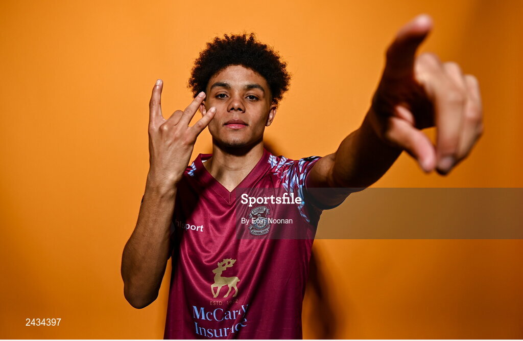 15 February 2023; Issa Kargbo poses for a portrait during a Cobh Ramblers squad portrait session at Lotamore Park in Mayfield, Cork. Photo by Eóin Noonan/Sportsfile