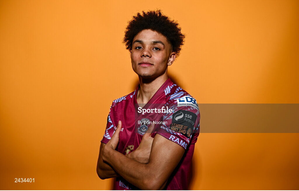 15 February 2023; Issa Kargbo poses for a portrait during a Cobh Ramblers squad portrait session at Lotamore Park in Mayfield, Cork. Photo by Eóin Noonan/Sportsfile