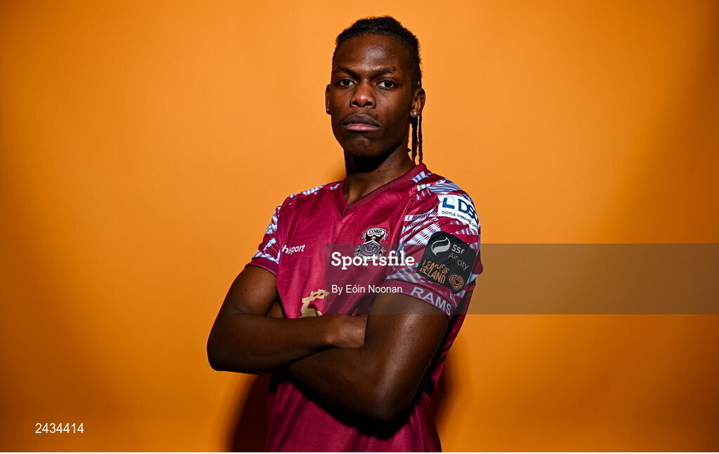 15 February 2023; Wilson Waweru poses for a portrait during a Cobh Ramblers squad portrait session at Lotamore Park in Mayfield, Cork. Photo by Eóin Noonan/Sportsfile