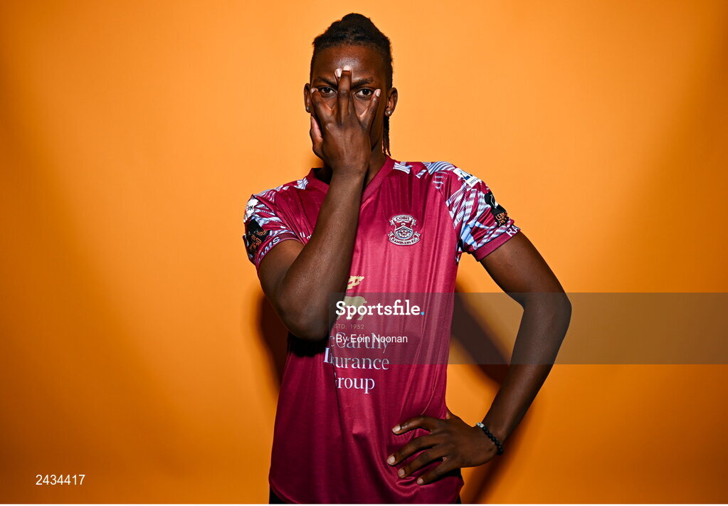 15 February 2023; Wilson Waweru poses for a portrait during a Cobh Ramblers squad portrait session at Lotamore Park in Mayfield, Cork. Photo by Eóin Noonan/Sportsfile