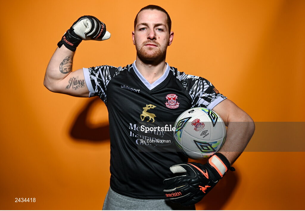 15 February 2023; Lee Steacy poses for a portrait during a Cobh Ramblers squad portrait session at Lotamore Park in Mayfield, Cork. Photo by Eóin Noonan/Sportsfile
