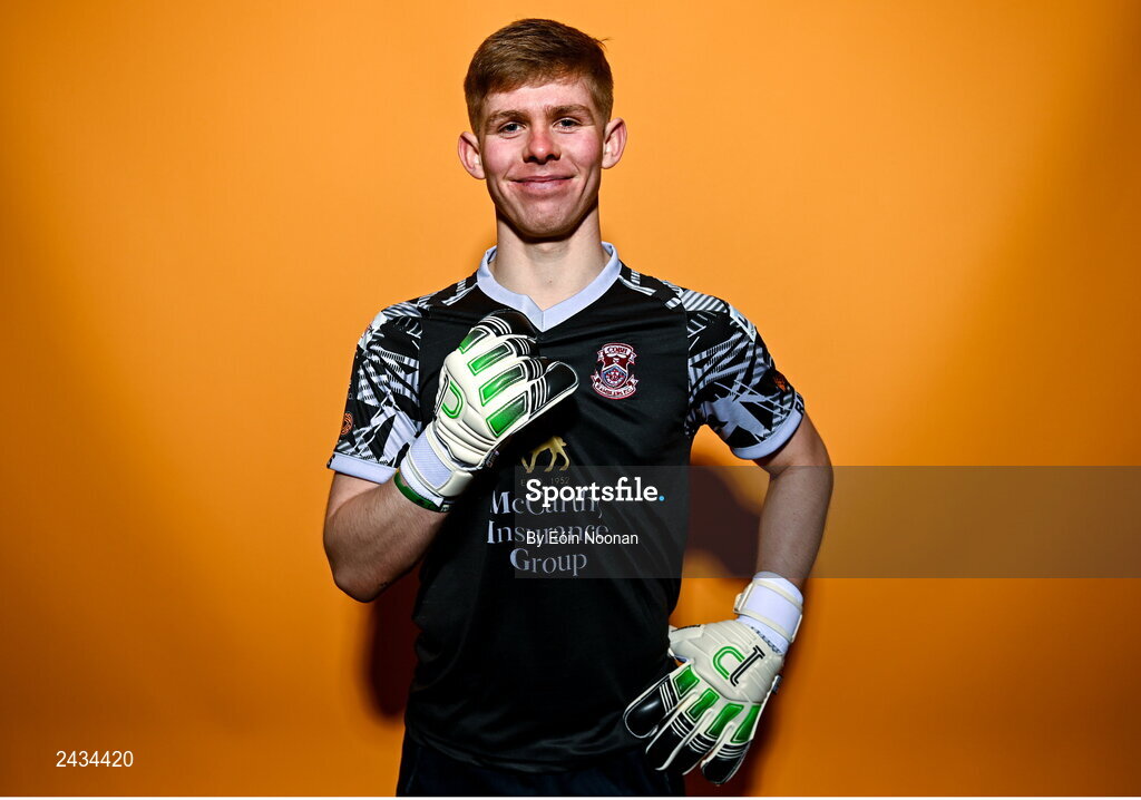 15 February 2023; Darragh Burke poses for a portrait during a Cobh Ramblers squad portrait session at Lotamore Park in Mayfield, Cork. Photo by Eóin Noonan/Sportsfile