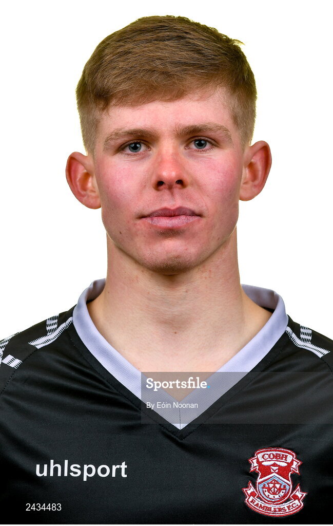 15 February 2023; Darragh Burke poses for a portrait during a Cobh Ramblers squad portrait session at Lotamore Park in Mayfield, Cork. Photo by Eóin Noonan/Sportsfile