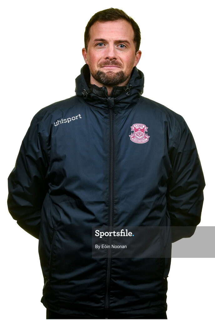 15 February 2023; Assistant manager Fran Rockett poses for a portrait during a Cobh Ramblers squad portrait session at Lotamore Park in Mayfield, Cork. Photo by Eóin Noonan/Sportsfile