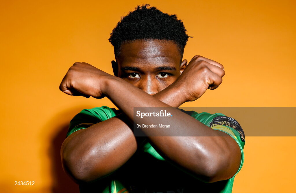 13 February 2023; Junior Ankomah poses for a portrait during a Kerry FC squad portrait session at the Kerry Sports Academy in Tralee, Kerry. Photo by Brendan Moran/Sportsfile