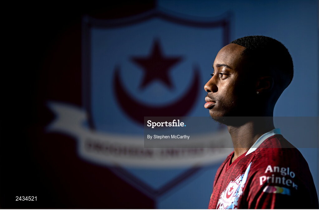 6 February 2023; Emmanuel Adegboyega poses for a portrait during a Drogheda United squad portrait session at Weaver's Park in Drogheda, Louth. Photo by Stephen McCarthy/Sportsfile