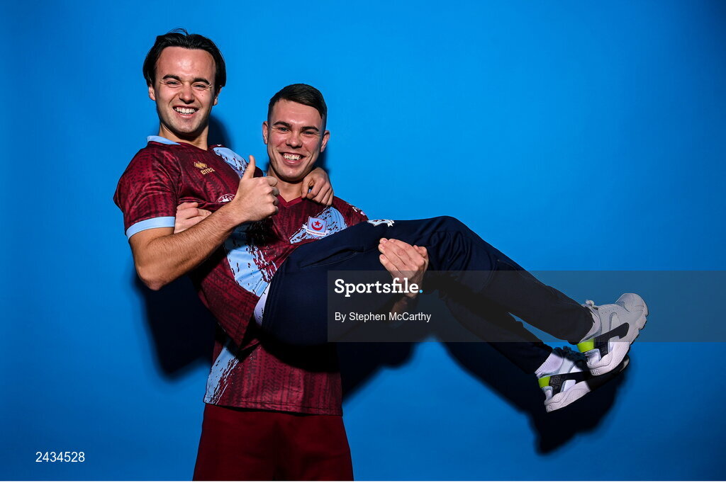 6 February 2023; Dylan Grimes, left, and Dayle Rooney poses for a portrait during a Drogheda United squad portrait session at Weaver's Park in Drogheda, Louth. Photo by Stephen McCarthy/Sportsfile