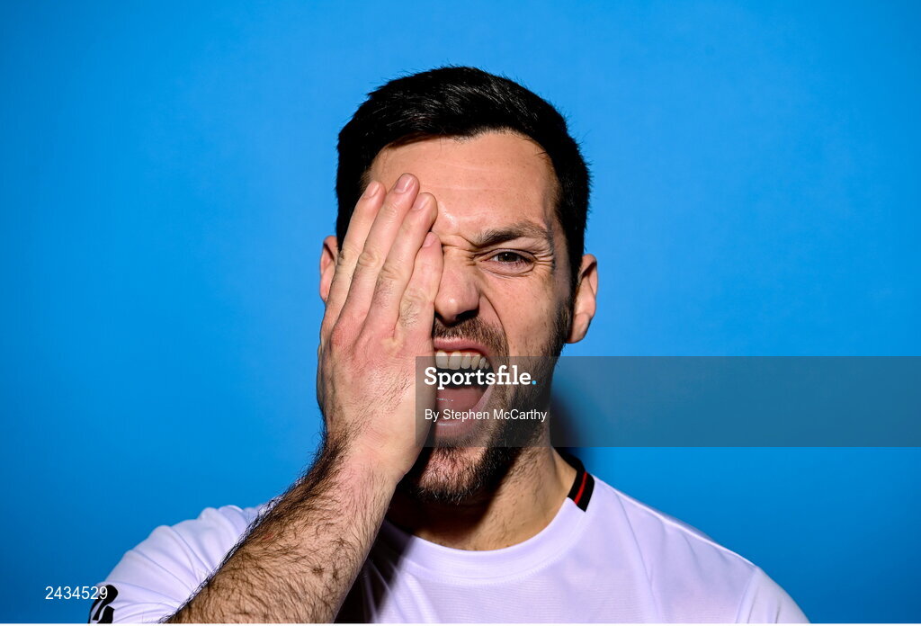 6 February 2023; Patrick Hoban poses for a portrait during a Dundalk squad portrait session at Oriel Park in Dundalk, Louth. Photo by Stephen McCarthy/Sportsfile