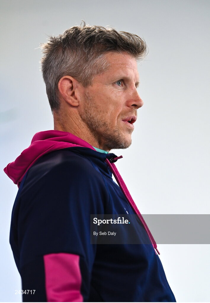 16 February 2023; Defence coach Simon Easterby speaking during an Ireland rugby media conference at the IRFU High Performance Centre on the Sport Ireland Campus in Abbotstown, Dublin. Photo by Seb Daly/Sportsfile