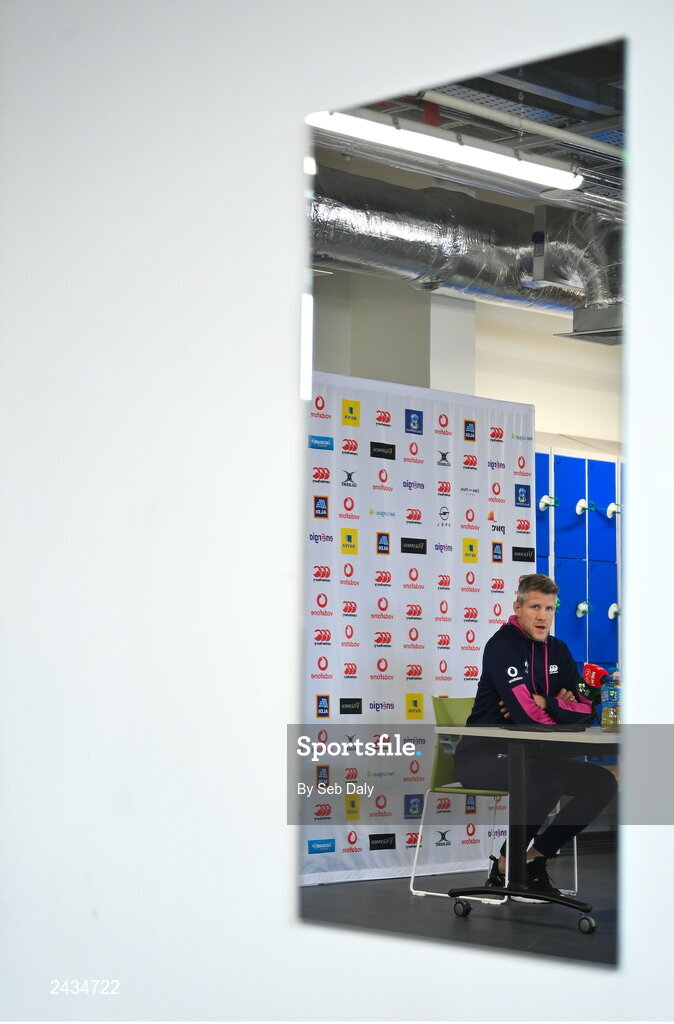16 February 2023; Defence coach Simon Easterby speaking during an Ireland rugby media conference at the IRFU High Performance Centre on the Sport Ireland Campus in Abbotstown, Dublin. Photo by Seb Daly/Sportsfile