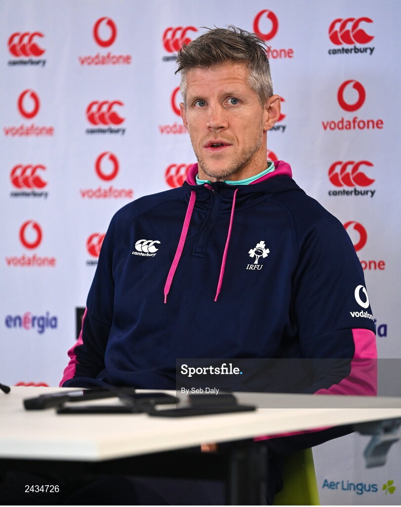 16 February 2023; Defence coach Simon Easterby speaking during an Ireland rugby media conference at the IRFU High Performance Centre on the Sport Ireland Campus in Abbotstown, Dublin. Photo by Seb Daly/Sportsfile