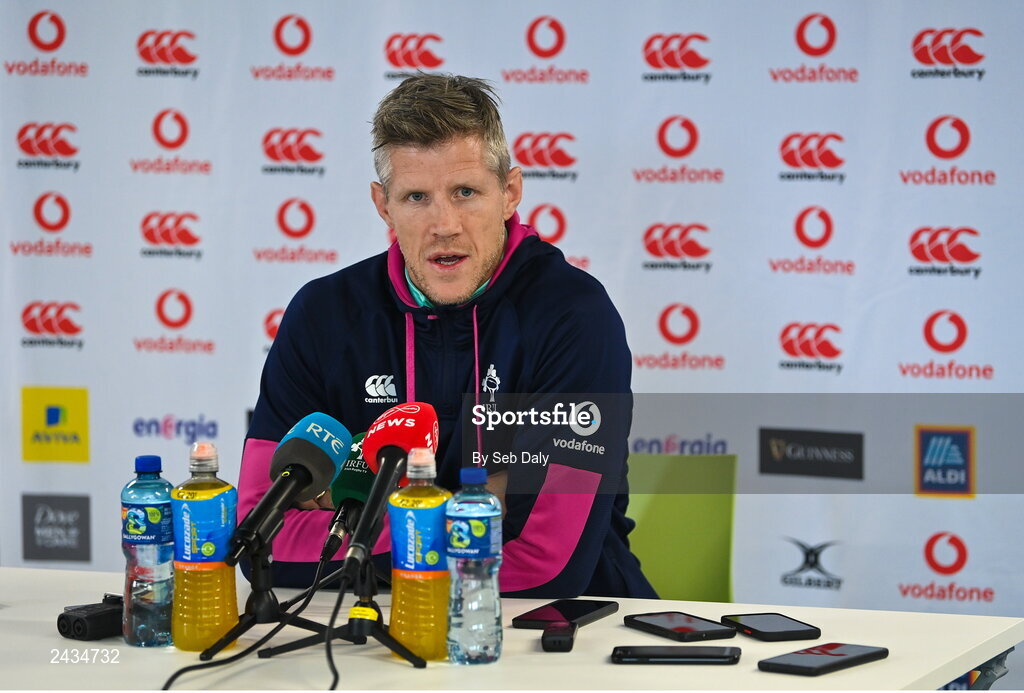 16 February 2023; Defence coach Simon Easterby speaking during an Ireland rugby media conference at the IRFU High Performance Centre on the Sport Ireland Campus in Abbotstown, Dublin. Photo by Seb Daly/Sportsfile