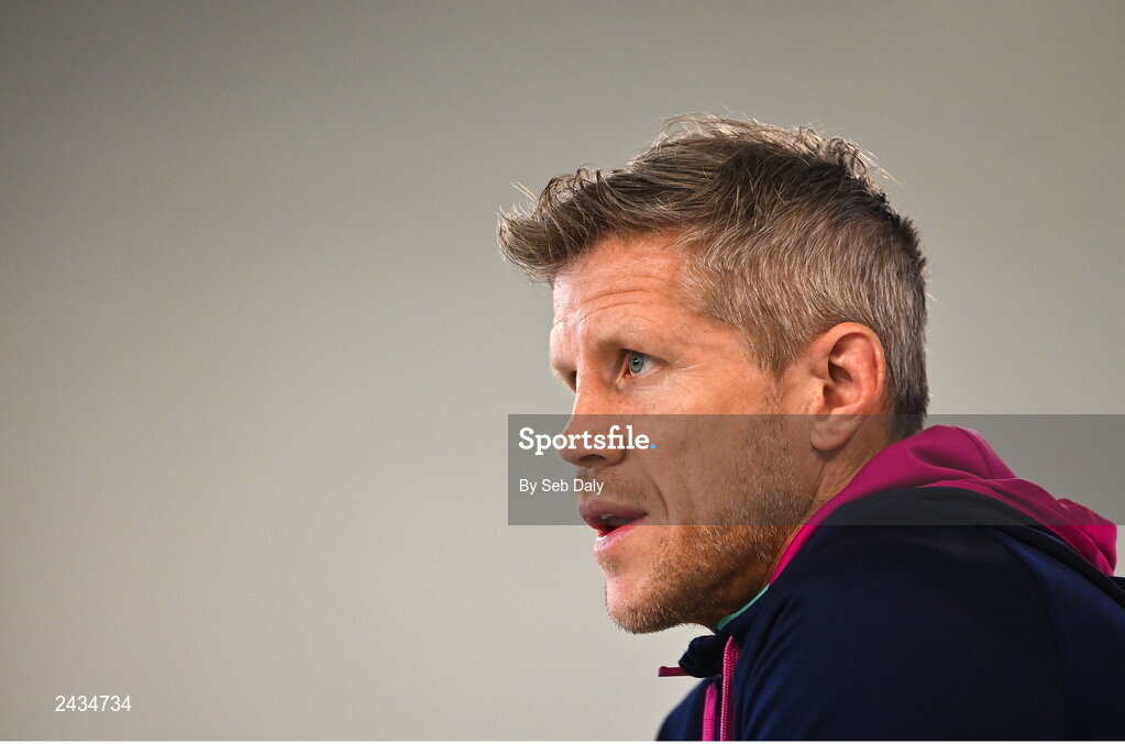 16 February 2023; Defence coach Simon Easterby speaking during an Ireland rugby media conference at the IRFU High Performance Centre on the Sport Ireland Campus in Abbotstown, Dublin. Photo by Seb Daly/Sportsfile