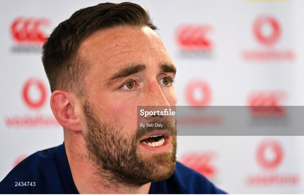16 February 2023; Jack Conan speaking during an Ireland rugby media conference at the IRFU High Performance Centre on the Sport Ireland Campus in Abbotstown, Dublin. Photo by Seb Daly/Sportsfile