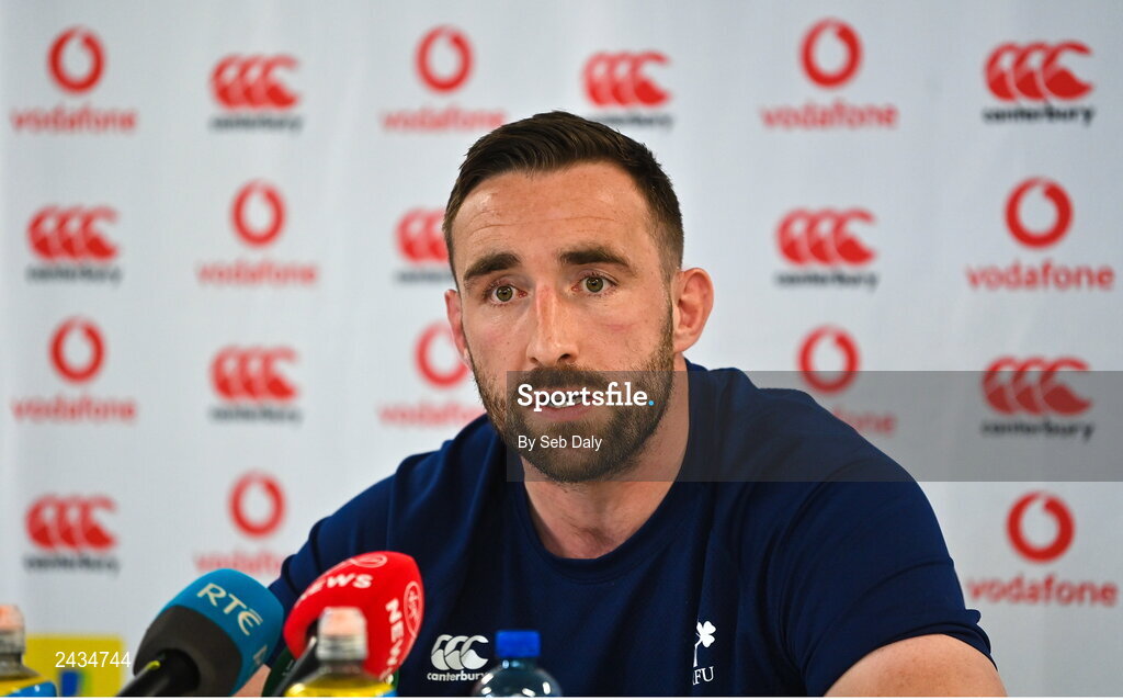 16 February 2023; Jack Conan speaking during an Ireland rugby media conference at the IRFU High Performance Centre on the Sport Ireland Campus in Abbotstown, Dublin. Photo by Seb Daly/Sportsfile