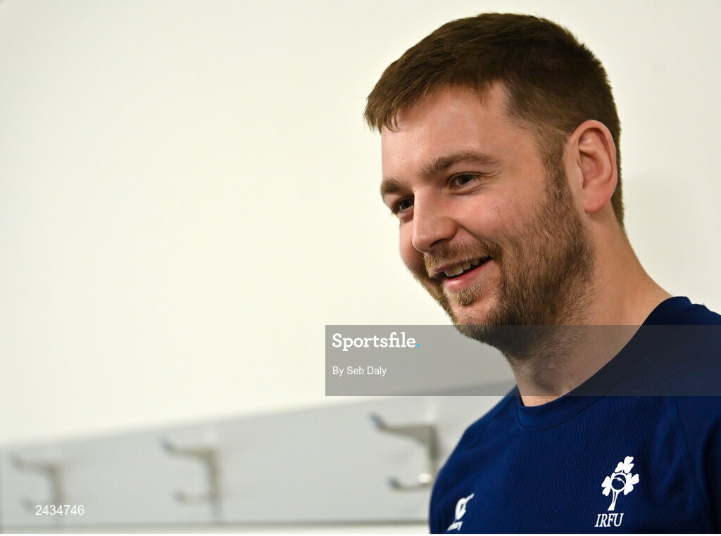 16 February 2023; Iain Henderson speaking during an Ireland rugby media conference at the IRFU High Performance Centre on the Sport Ireland Campus in Abbotstown, Dublin. Photo by Seb Daly/Sportsfile