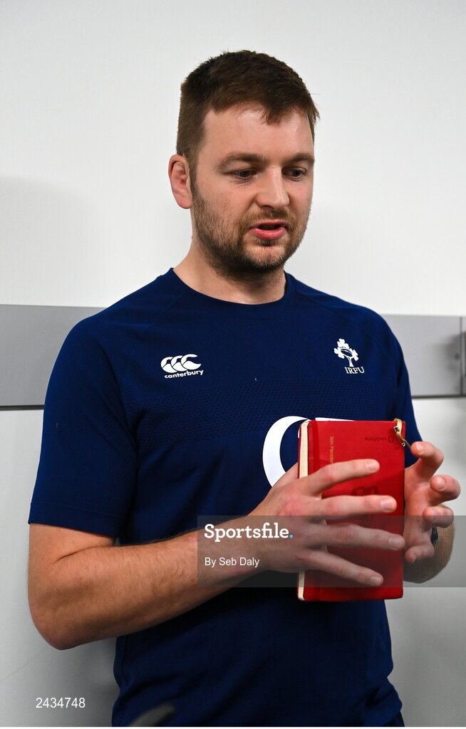 16 February 2023; Iain Henderson speaking during an Ireland rugby media conference at the IRFU High Performance Centre on the Sport Ireland Campus in Abbotstown, Dublin. Photo by Seb Daly/Sportsfile