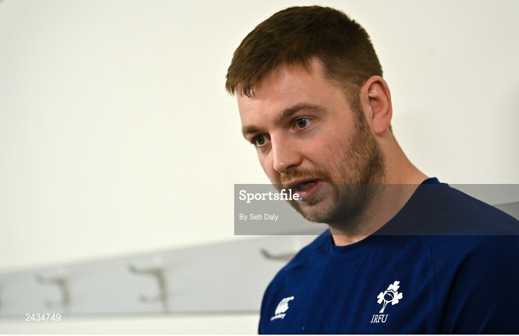 16 February 2023; Iain Henderson speaking during an Ireland rugby media conference at the IRFU High Performance Centre on the Sport Ireland Campus in Abbotstown, Dublin. Photo by Seb Daly/Sportsfile