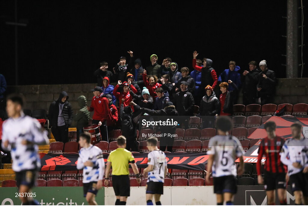 18 February 2023; Longford Town supporters during the SSE Airtricity Men's First Division match between Longford Town and Athlone Town at Bishopsgate in Longford. Photo by Michael P Ryan/Sportsfile
