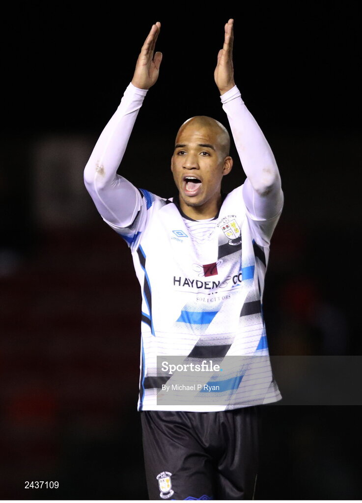 18 February 2023; Noah Van Geenan of Athlone Town after his side's victory during the SSE Airtricity Men's First Division match between Longford Town and Athlone Town at Bishopsgate in Longford. Photo by Michael P Ryan/Sportsfile