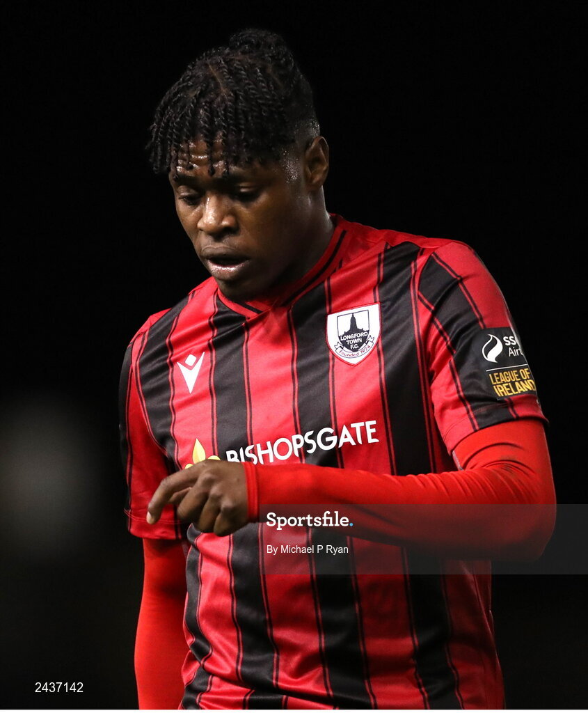 18 February 2023; Jamal Ibrahim of Longford Town after his side's defeat in the SSE Airtricity Men's First Division match between Longford Town and Athlone Town at Bishopsgate in Longford. Photo by Michael P Ryan/Sportsfile