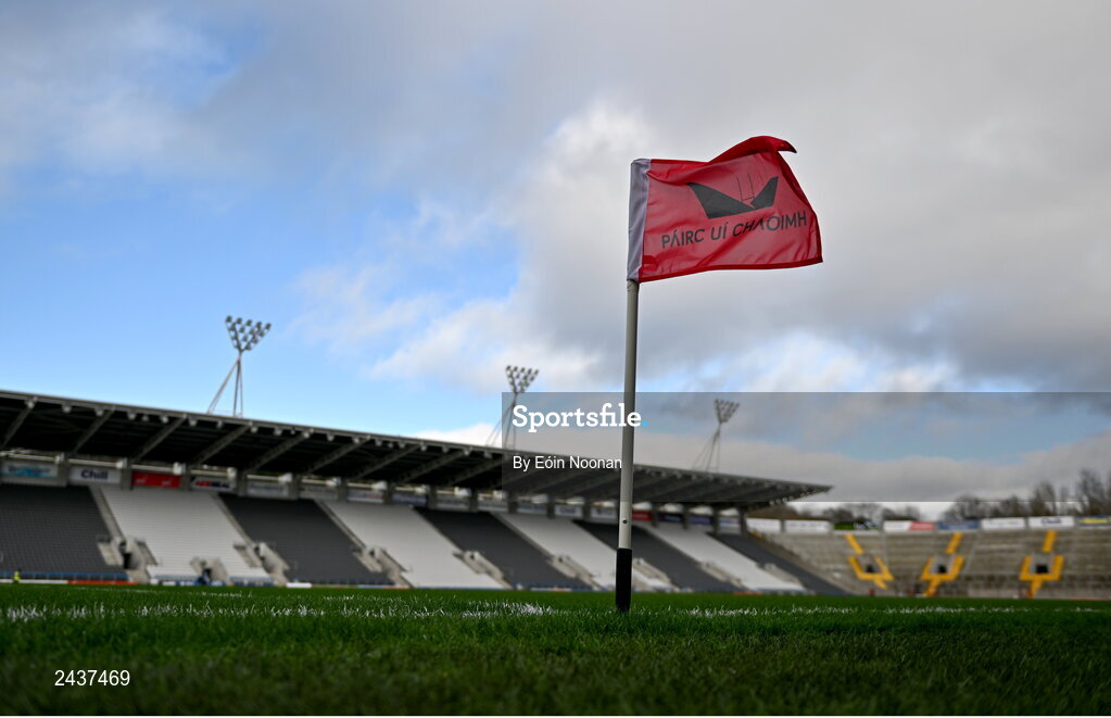 19 February 2023; A general view of a branded sideline flag before the Allianz Football League Division Two match between Cork and Dublin at Páirc Ui Chaoimh in Cork. Photo by Eóin Noonan/Sportsfile